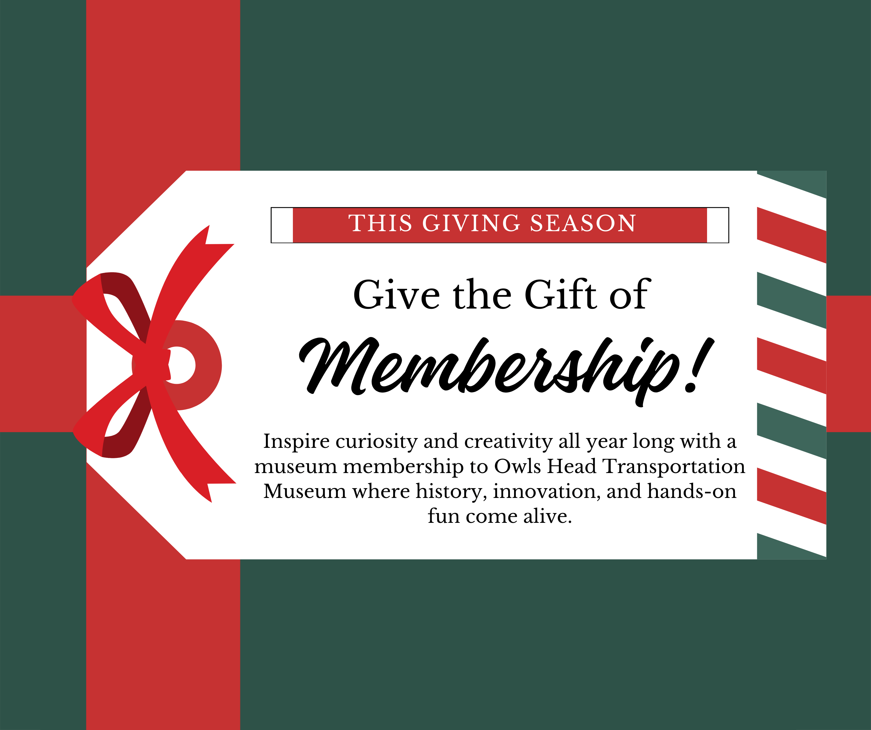 Looking for a meaningful gift this holiday season? Give the gift of membership to the Owls Head Transportation Museum; the perfect way to share discovery, creativity, and year-round fun with family and friends.